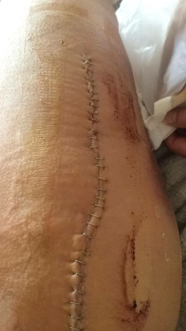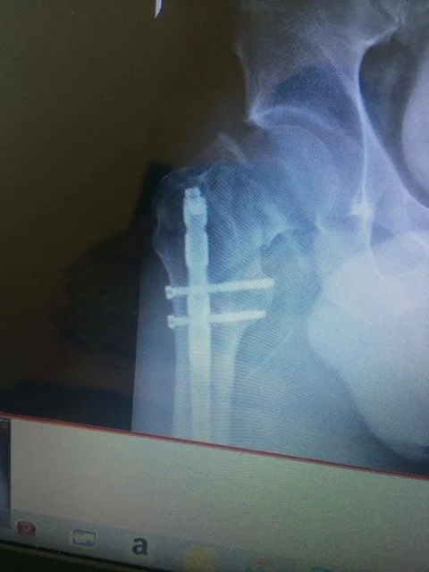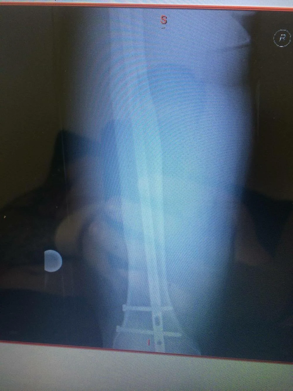 Howie underwent an operation on his leg the following day where they tried to remove the fragments of the previous screws and place a rod parallel with the femur to allow it to heal. He’s also had screws placed into his hip joint to reattach the ball to the socket. He now has 4 screws in his leg and a metal rod, with time these will all eventually be removed.