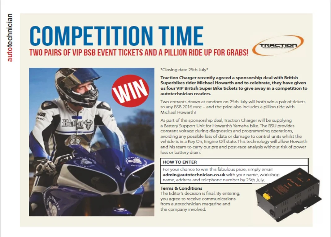 We've teamed up with autotechnician to bring you a new competition to win 2 pairs of VIP tickets to the British Superbike Championships, including a pillion ride with Michael Howarth!